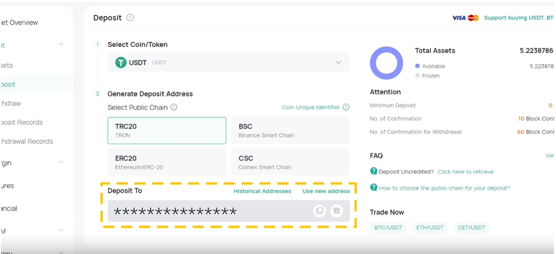 Cara Deposit di CoinEx