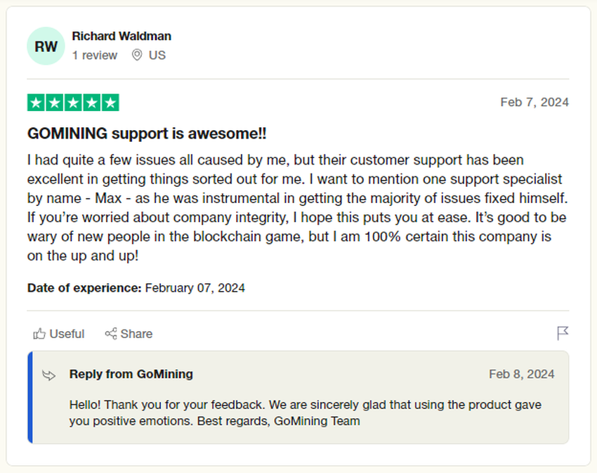 Pengalaman pengguna dengan GoMining, seperti yang tecermin dari skor Trustpilot sebesar 4,3, menunjukkan komunitas yang menghargai evolusi, transparansi, dan dukungan pelanggan platform ini.