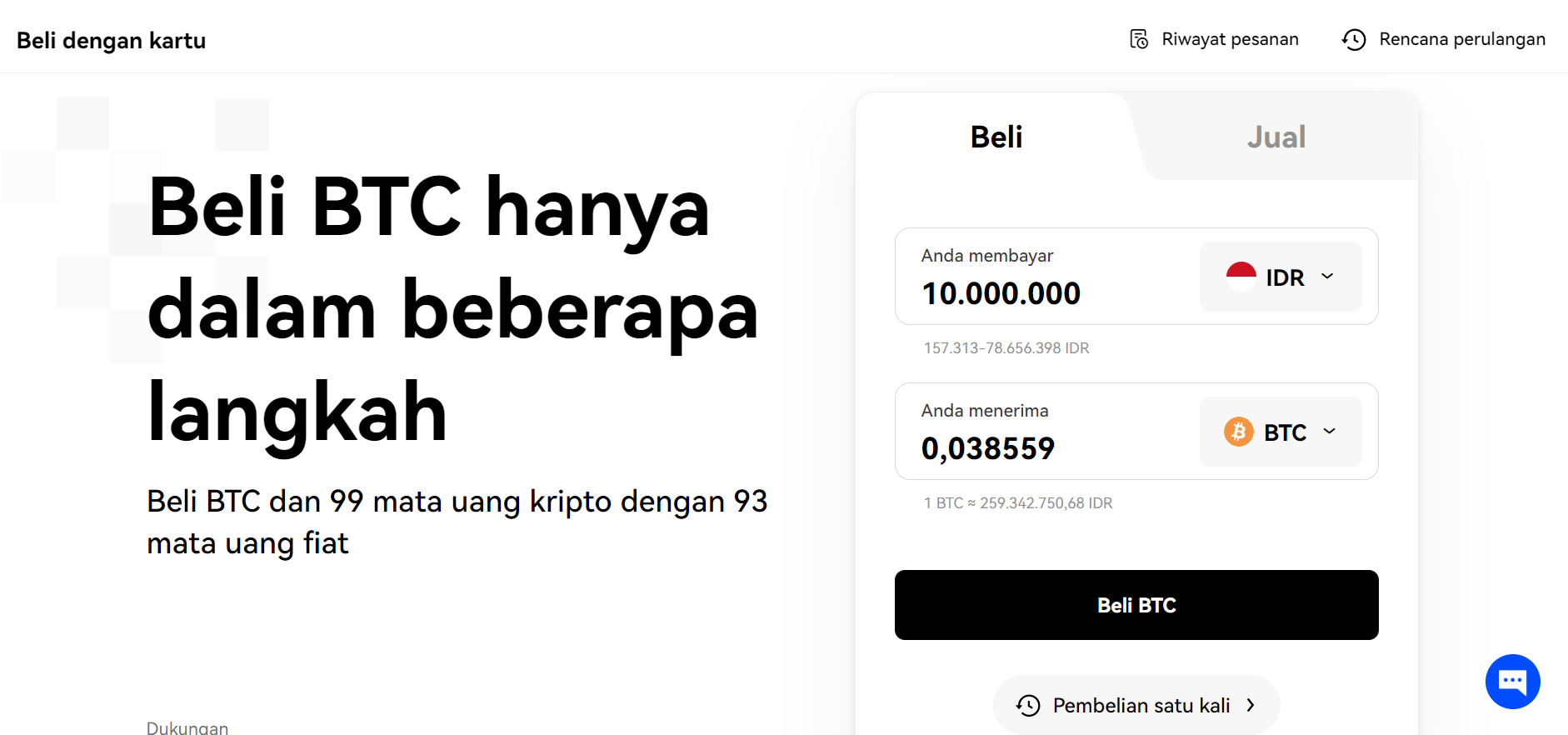 Khusus untuk fiat-to-crypto trading, kamu harus menggunakan “Quick Trade” sehingga bisa membeli crypto menggunakan mata uang fiat seperti Rupiah. Setelah itu, pilih apakah mau beli atau jual. Kalau mau beli, pilih mata uang dan nilai kripto yang ingin dibeli. Kamu akan diarahkan ke halaman berbeda untuk pertukaran kripto yang disediakan oleh pihak ketiga.