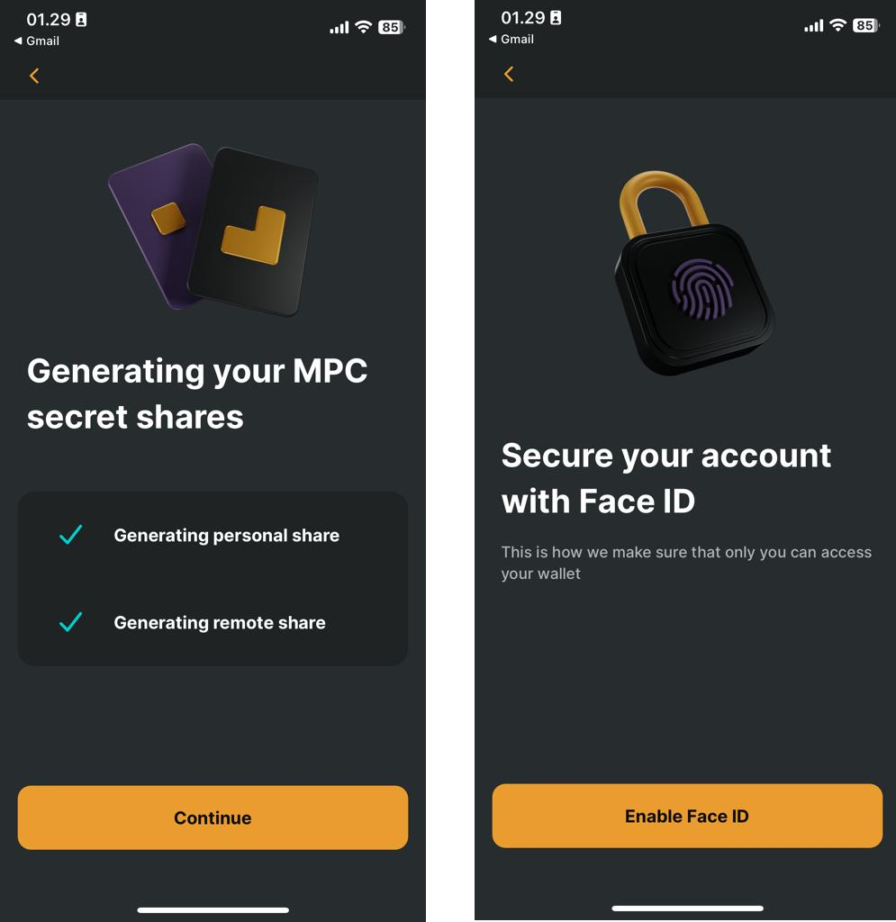 Setelah konfirmasi email, Zengo akan otomatis membuat MPC. Lalu, kamu bisa mengaktifkan biometrik Face ID untuk mengakses aplikasi ini.