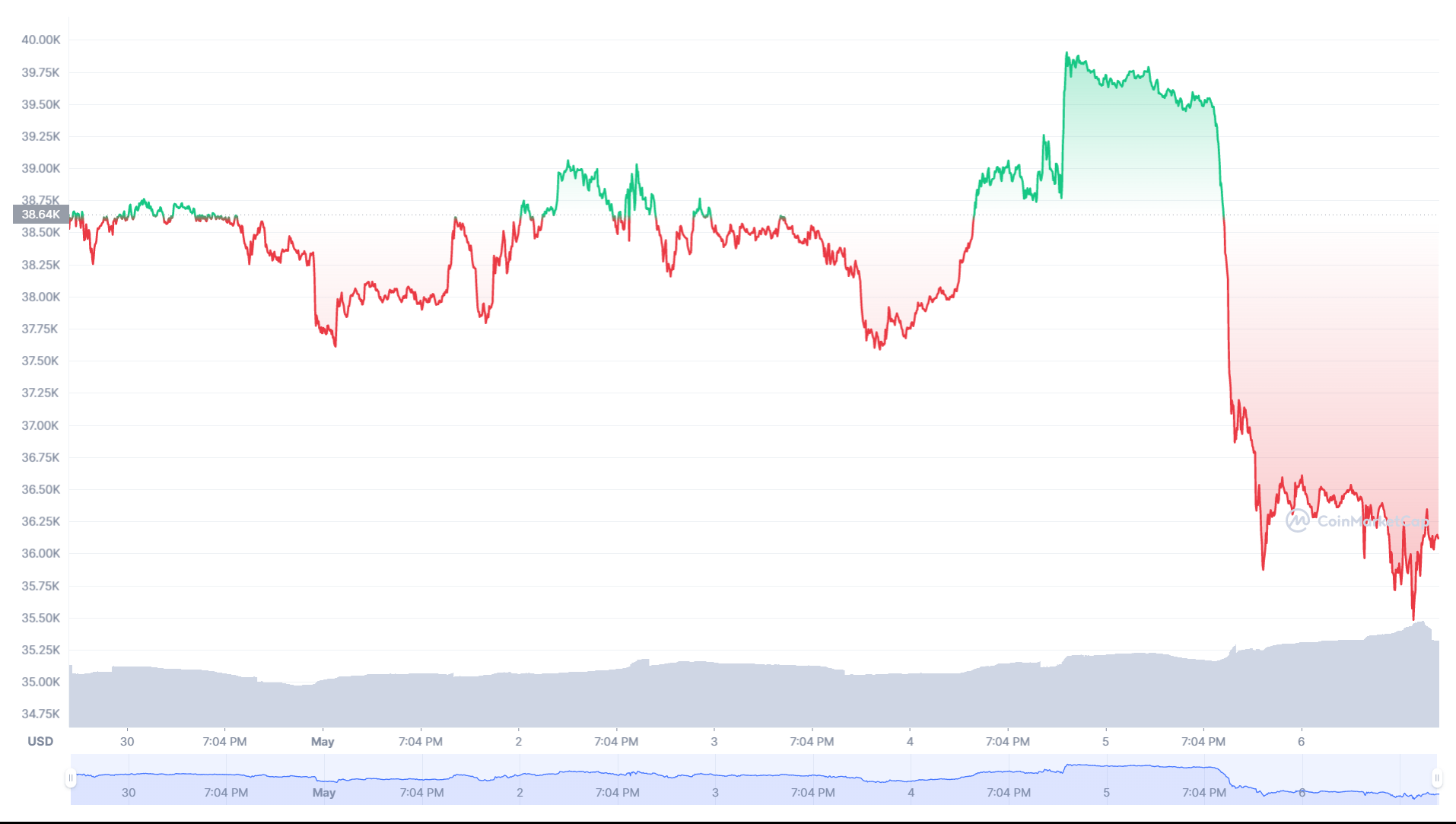 Nampaknya Terra kembali membeli Bitcoin, karena melihat kondisi harga Bitcoin yang tengah anjlok. Selama pekan ini, Bitcoin terlihat agak lesu usai gagal menembus US$40.000 di tanggal 5 Mei dini hari. Pada saat penulisan, menurut data dari CoinMarketCap, saat ini harga Bitcoin berada di angka US$36.212.