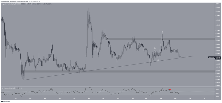 Sementara itu, untuk saat ini, harga DOGE berisiko mengalami breakdown dari garis ascending support yang sudah terbentuk sejak Juni 2022 lalu.