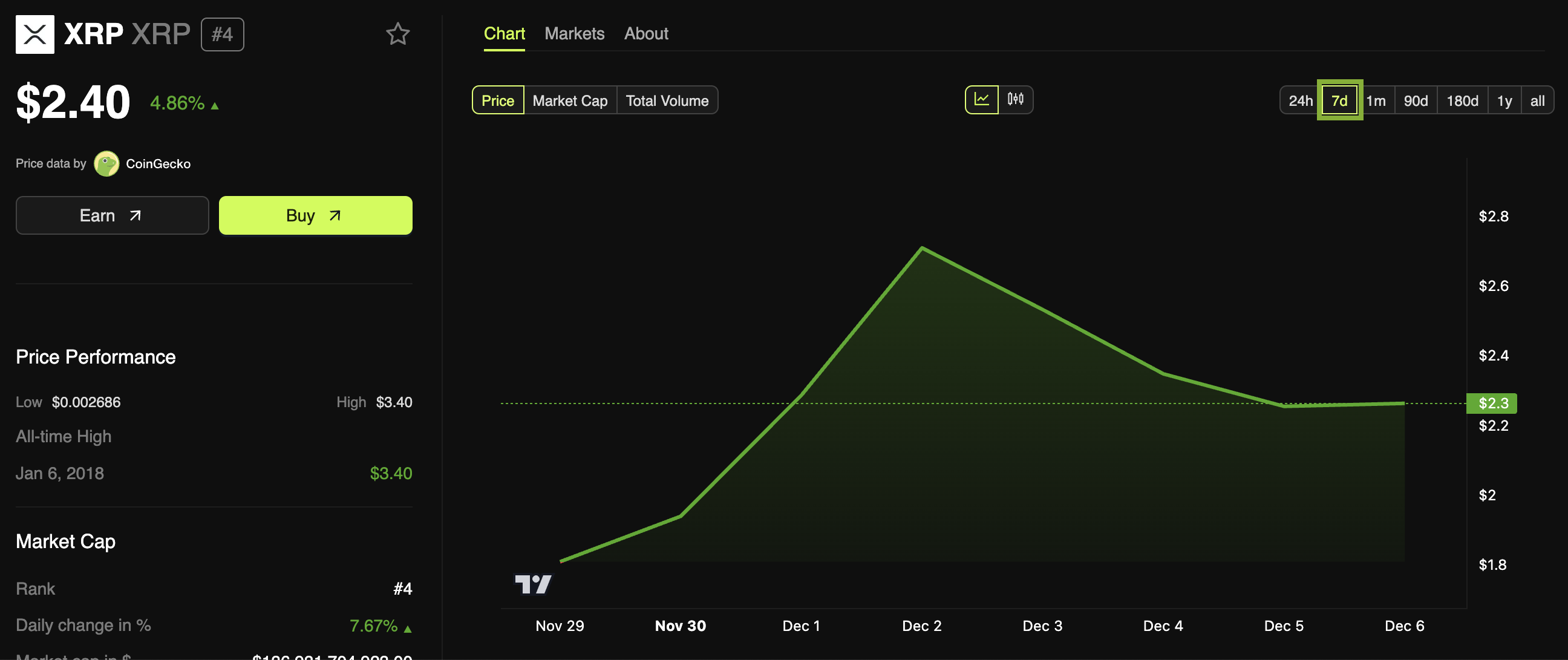 Sayangnya, tren bullish ini tidak bertahan lama. Sinyal bearish hari ini menunjukkan bahwa XRP menghadapi resistance harga yang serius dan sedikit momentum ke depan. Aset ini mencapai puncaknya di tengah minggu, dan telah menurun sejak itu.