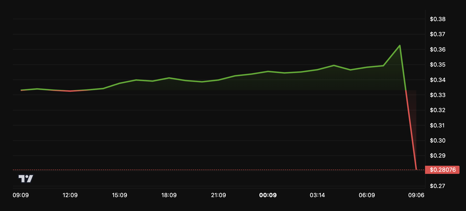 Namun sayangnya, listing tersebut tidak berdampak positif pada harga. Data BeInCrypto menunjukkan bahwa XTER turun 15,8% dalam sehari terakhir. Pada saat penulisan, token ini berada di kisaran US$0,28.
