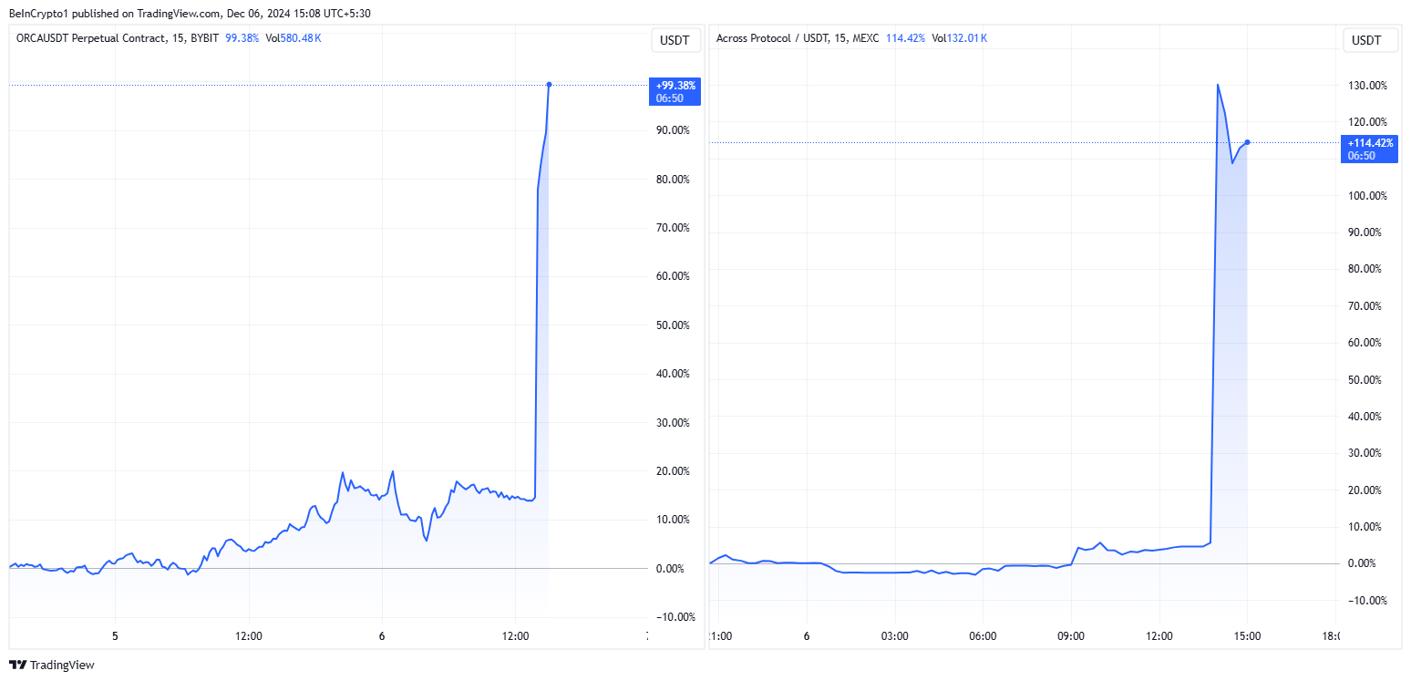 Selanjutnya, trading untuk pasangan perdagangan baru yang disebutkan di atas bergantung pada kelayakan berdasarkan negara atau wilayah tempat tinggal pengguna. Di sisi lain, data di TradingView mengungkap bahwa ORCA dan ACX telah mencatatkan pertumbuhan eksponensial sejak kabar listing Binance ini.