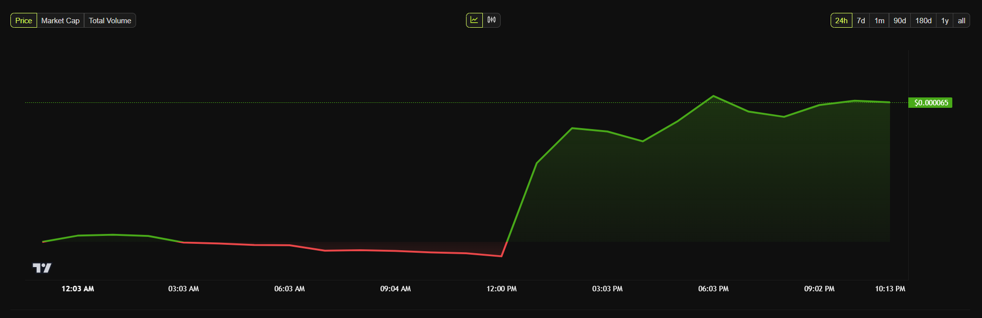 Pengumuman ini menyebabkan Simon’s Cat (CAT) melejit lebih dari 60%, mencapai rekor tertinggi sepanjang masa (all-time high / ATH) US$0,00006811. Kapitalisasi pasar meme coin ini turut melambung ke US$439 juta.
