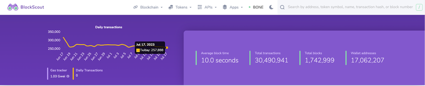 Menurut data on-chain dari native testnet Puppyscan Shiba Inu, jumlah total transaksi pada “Puppyscan” Shibarium telah melampaui tonggak penting sebanyak 30 juta transaksi. Secara signifikan, Shibarium telah secara konsisten mempertahankan rata-rata 260.000 transaksi harian.