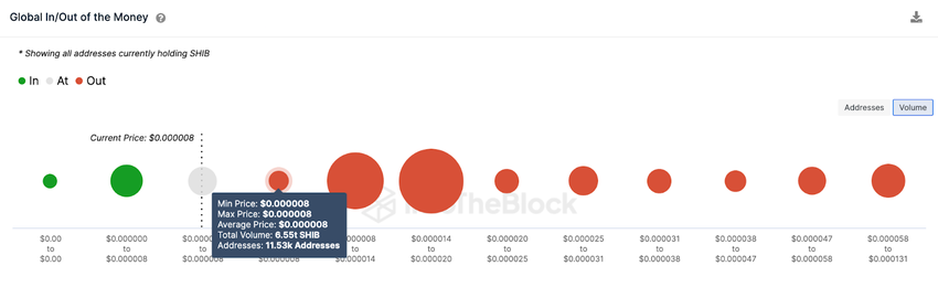 Namun saat ini, para bull mungkin tengah menghadapi tantangan berat di sekitar level US0,0000085. Pasalnya, sebanyak 11.500 investor yang membeli total 6,55 triliun SHIB dengan harga minimum US$0,000008 berpotensi memicu pullback alias koreksi harga.