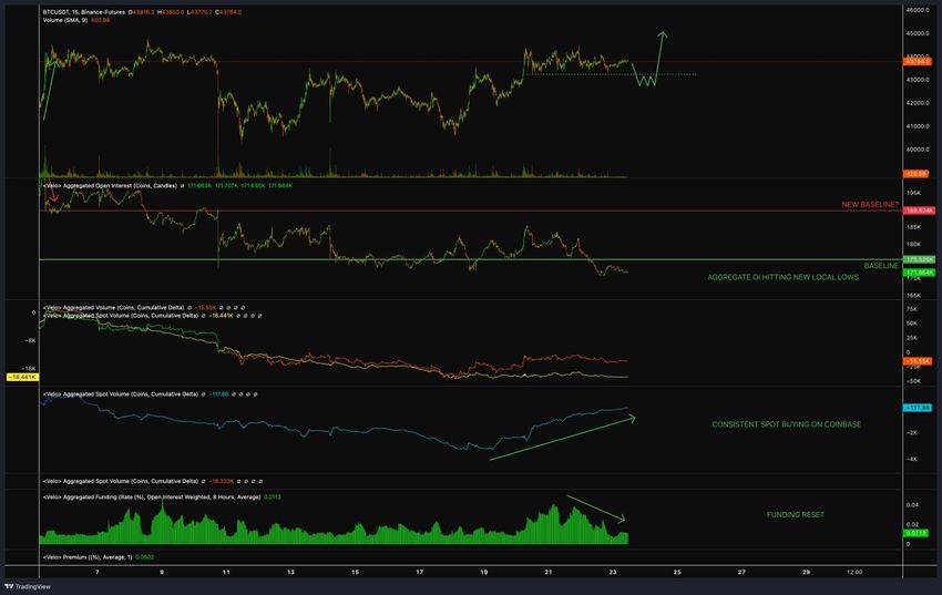 Sebagai alasannya, ia menyoroti peningkatan pembelian spot di Coinbase, reset pendanaan, dan penurunan open interest.