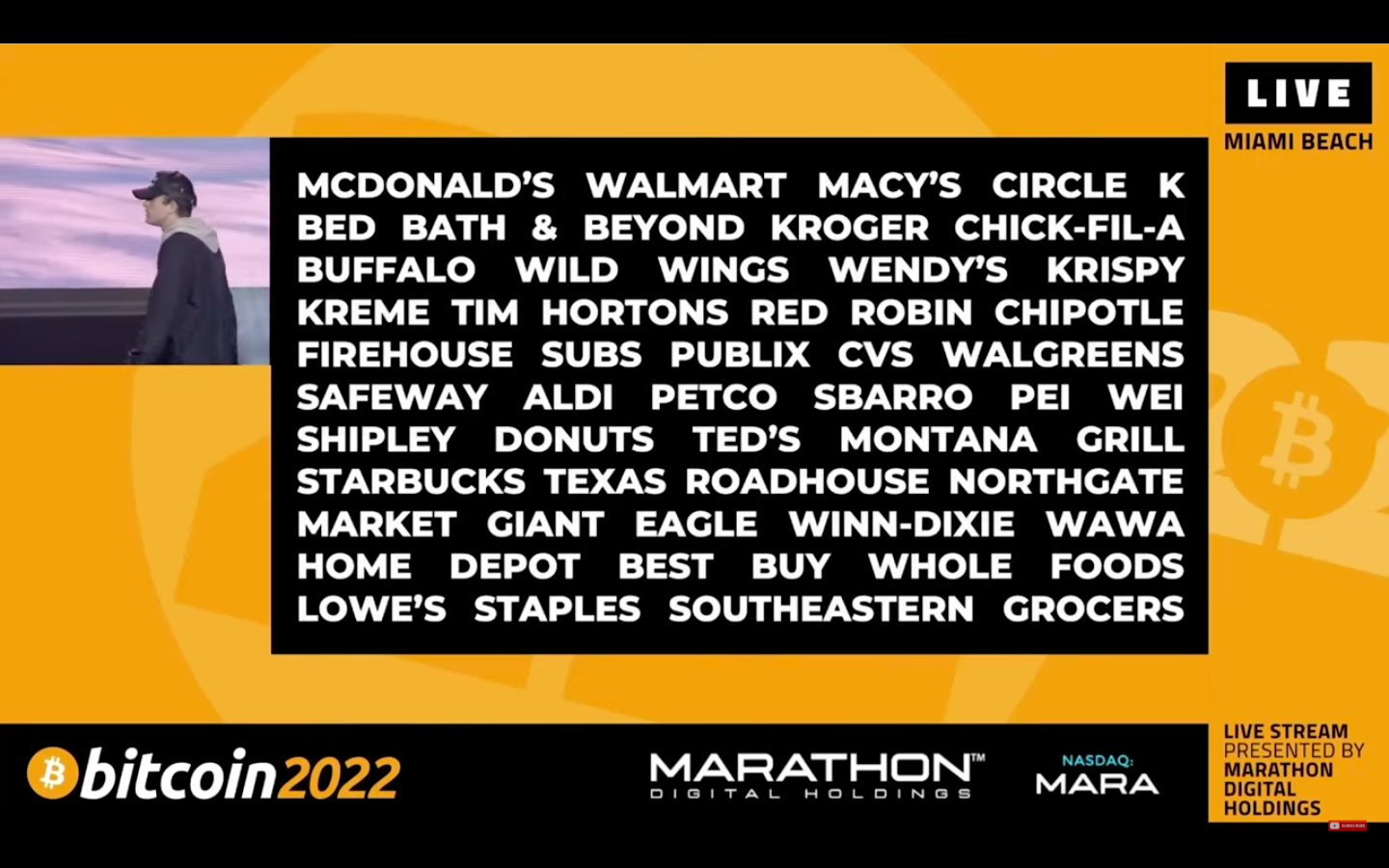 Sekarang, mereka akan dapat memanfaatkan akses murah, instan, dan terbuka yang ditawarkan oleh Bitcoin. Gambar presentasi yang ditampilkan mencantumkan McDonald’s, Walmart, Starbucks, Circle K, dan lain sebagainya.