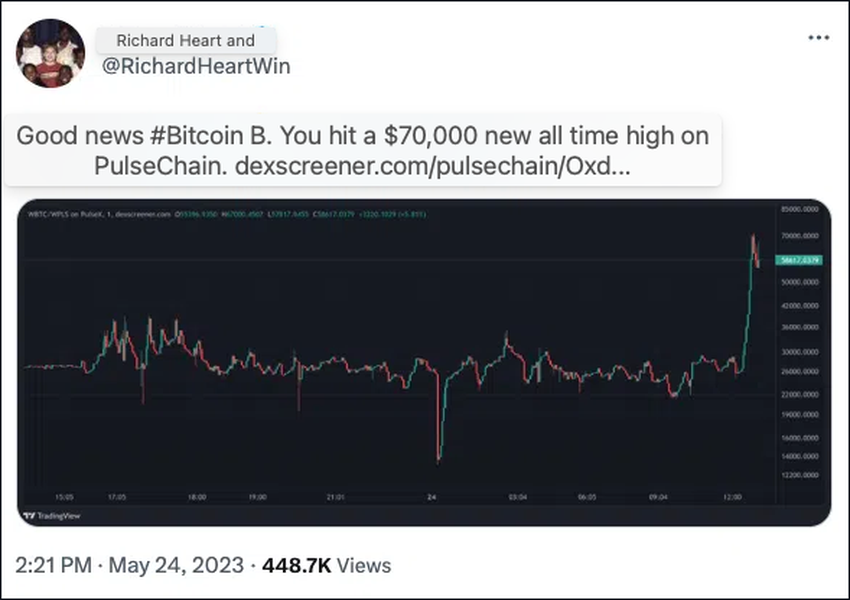 Rabu lalu (24/5), harga wrapped Bitcoin (wBTC) di PulseChain baru milik Richard Heart mencapai rekor ATH sebesar US$70.000. Hal ini menjadi bukti bahwa terdapat peluang untung yang menggiurkan yang menanti di sudut-sudut tersembunyi pasar kripto.