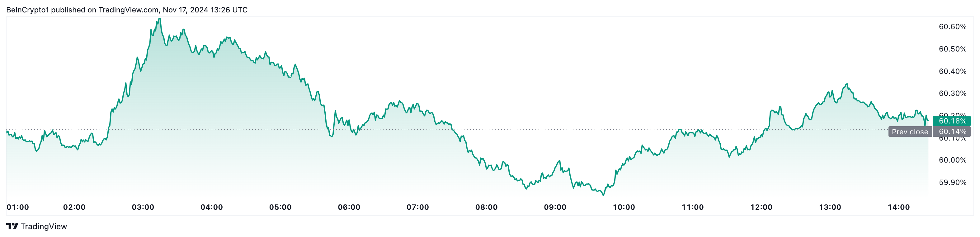 Hingga saat ini, dominasi Bitcoin telah turun menjadi 60%. Aksi turun ini bertentangan dengan ekspektasi sejumlah analis bahwa harga Bitcoin mungkin siap meroket ke US$100.000 dalam beberapa hari mendatang.