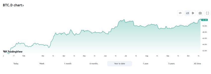 Bitcoin Dominance Lampaui 50%