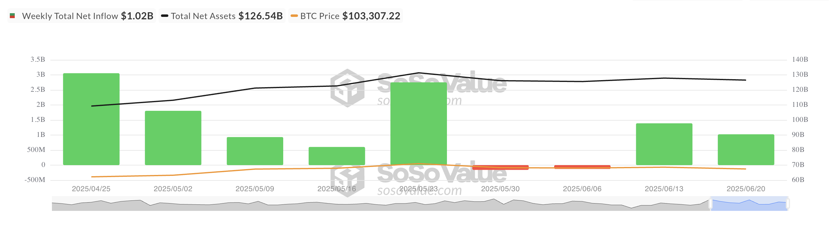 Antara 16 Juni dan 20 Juni, dana yang didukung Bitcoin melihat arus bersih sebesar US$1,02 miliar, hampir 30% penurunan dari US$1,39 miliar yang tercatat minggu sebelumnya.
