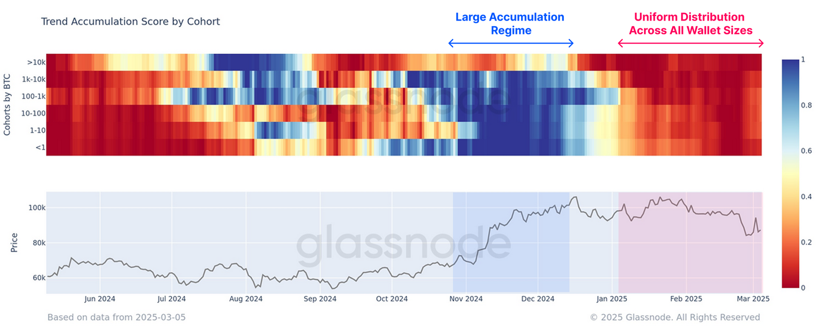 Selain itu, Glassnode menyoroti bahwa The Accumulation Trend Score tetap di bawah 0,1.