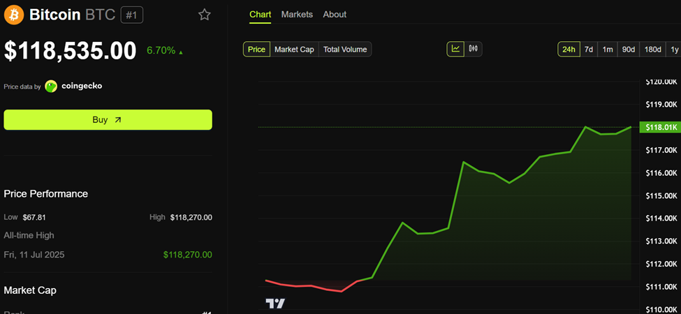 Perubahan antarmuka ini bertepatan dengan kenaikan Bitcoin ke all-time high baru, dari US$112.000 menjadi US$118.000 dalam jangka waktu 24 jam.