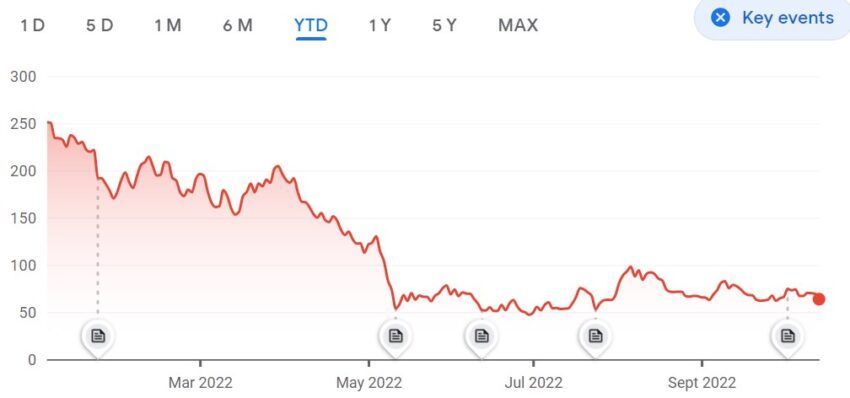 SponsoredPada perdagangan hari Jumat (14/10) lalu, harga COIN terlihat melemah 8% dan diperdagangkan di harga US$63,59. Apabila kita ukur dalam rentang waktu year-to-date (YTD), harga saham COIN sudah turun sebanyak 74%. Oleh karena itu, tidak mengherankan JP Morgan dan Goldman Sachs pun menurunkan peringkatnya terhadap saham COIN menjadi sell.
