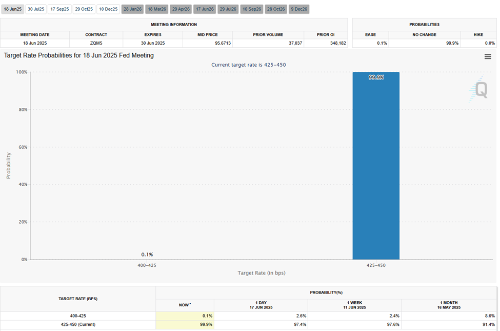 Berdasarkan CME FedWatch Tool, trader tidak mengharapkan perubahan suku bunga segera. Namun, investor akan memperhatikan pidato ketua Fed Jerome Powell dengan cermat untuk tanda-tanda bagaimana Fed berencana menangani inflasi yang terus-menerus di tengah gangguan geopolitik.
