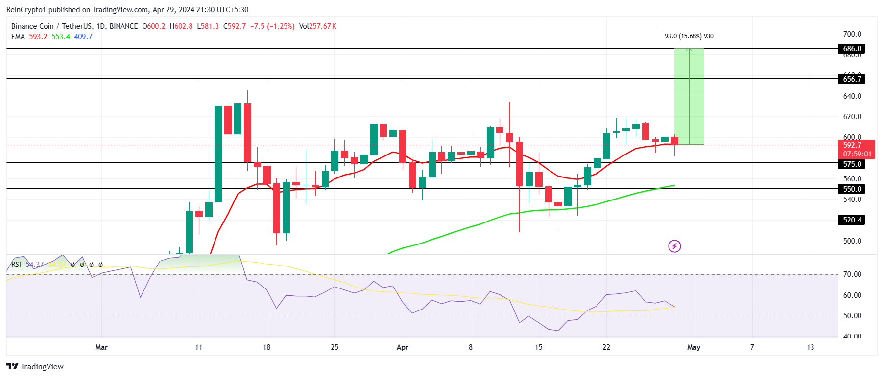 Meski begitu, BNB mendapat keuntungan dari dukungan para investornya serta isyarat pasar yang bullish. Jarak native token crypto exchange ini hanya kurang dari 16% lagi dari rekor tertingginya sepanjang masa di US$686. Adapun keberhasilan untuk menaklukkan level ini akan memungkinkan Binance Coin mencatat kenaikan lebih lanjut.