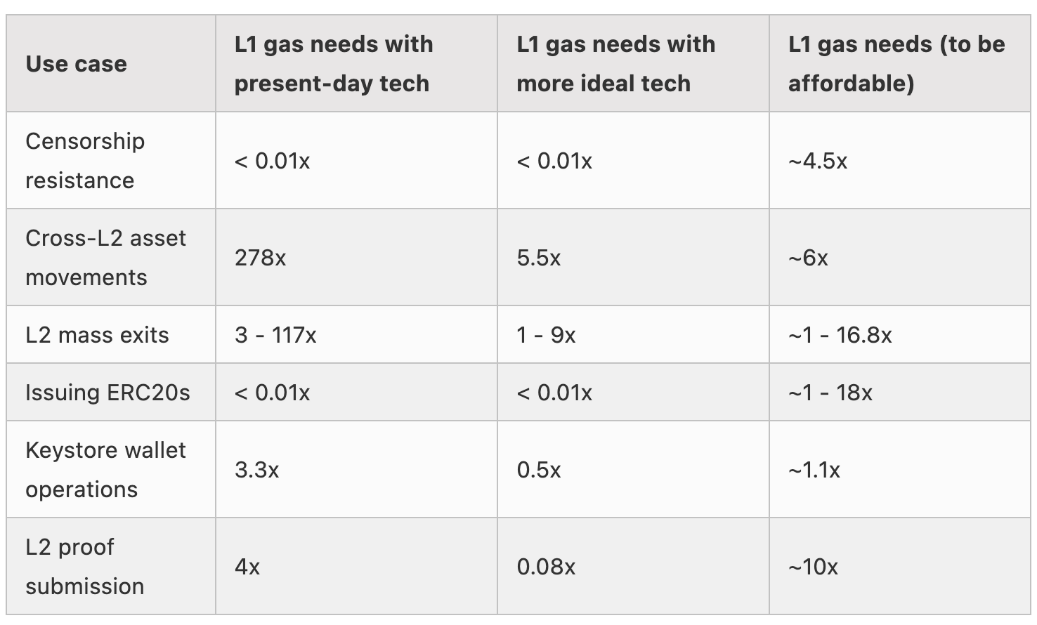 Pada dasarnya, ia melalui daftar kasus penggunaan inti Ethereum dan menjelaskan bagaimana peningkatan batas gas L1 (Layer-1) akan membantu fungsi L2. Meskipun Buterin membayangkan protokol L2 sebagai masa depan nyata blockchain, semuanya dibangun di atas L1. Batas gas yang lebih tinggi akan memberikan ekosistem lebih banyak langkah pencegahan terhadap pelaku buruk, bersama dengan keuntungan lainnya.