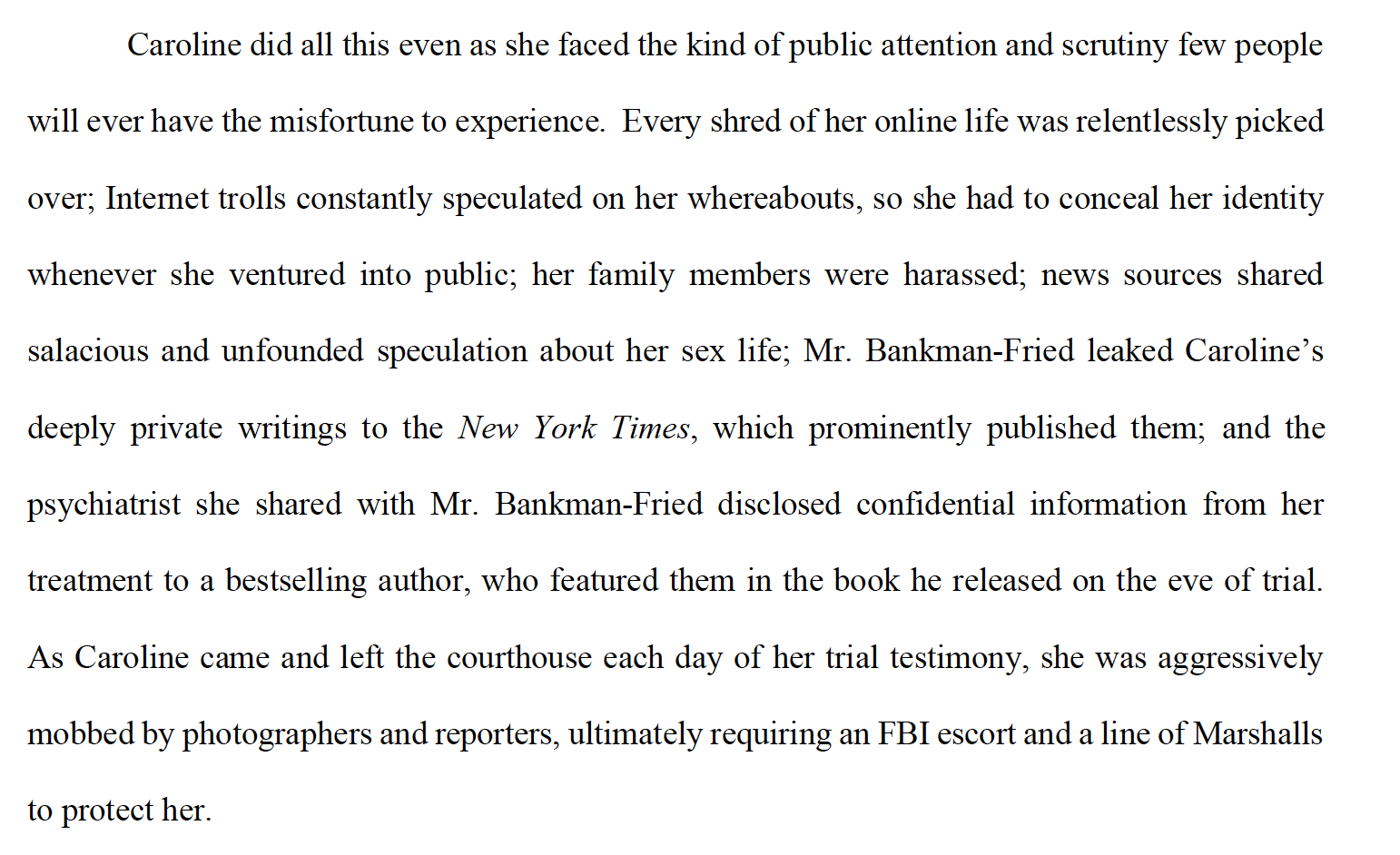“Pengacara Caroline Ellison ingin menyembunyikan bagian dari pengajuan vonisnya karena dia menjadi fokus perhatian media yang intens dan sorotan warga internet,” komentar koresponden hukum Jacob Shamsian.