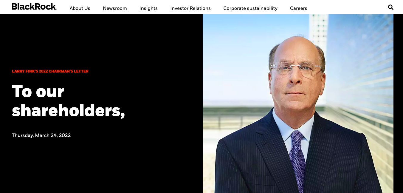 Dalam sebuah surat kepada para pemegang saham BlackRock pada 24 Maret 2022, Larry Fink mengatakan bahwa, akhirnya, aspek perang yang kurang dibahas adalah mengenai dampak potensialnya pada percepatan adopsi mata uang digital.