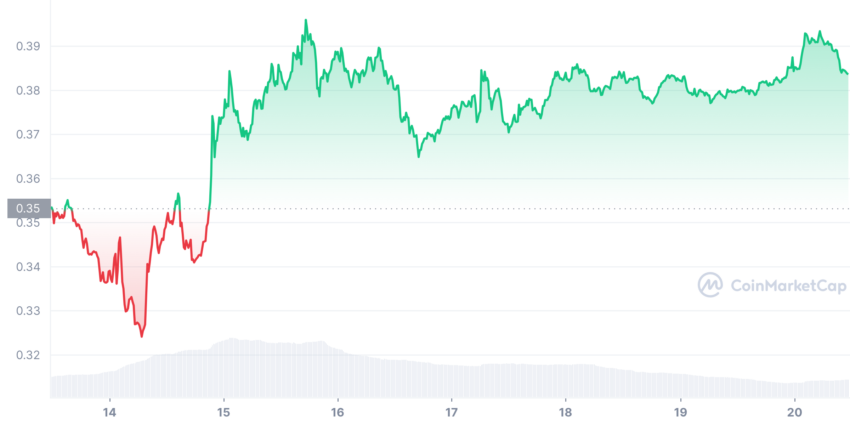 SponsoredMenurut data dari CoinMarketCap, XRP tercatat naik 5,4% dalam seminggu terakhir ini. Berkat kenaikan itu juga, XRP diperdagangkan dengan harga US$0,3863 pada saat publikasi.