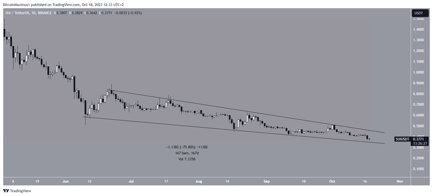 Harga SUI telah mengalami penurunan signifikan sejak mencetak rekor tertinggi di US$1,50 pada 4 Mei. Dalam kurun waktu 167 hari, harganya telah turun 76%.