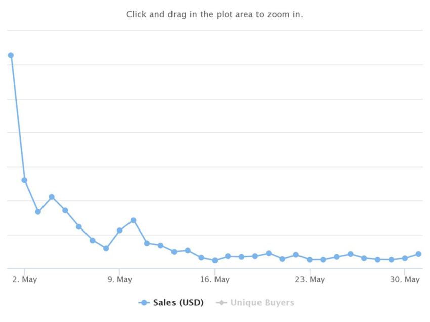 Kendati demikian, ternyata nilai tersebut telah mengalami penurunan sebesar 73% dari volume penjualan NFT Ethereum di bulan Mei. Pada bulan Mei sendiri, raihan volume penjualan NFT pada blockchain smart contract pertama ini adalah sekitar US$2,75 miliar.