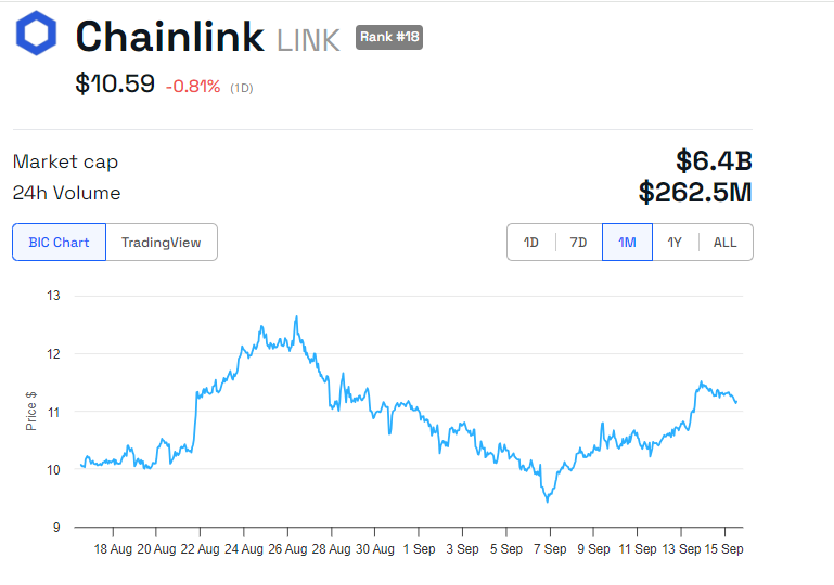 SponsoredData BeInCrypto menunjukkan bahwa harga LINK belum mencerminkan efek dari kepercayaan investor. Saat ini, harganya US$10,59, turun 0,81% sejak sesi Selasa dibuka.