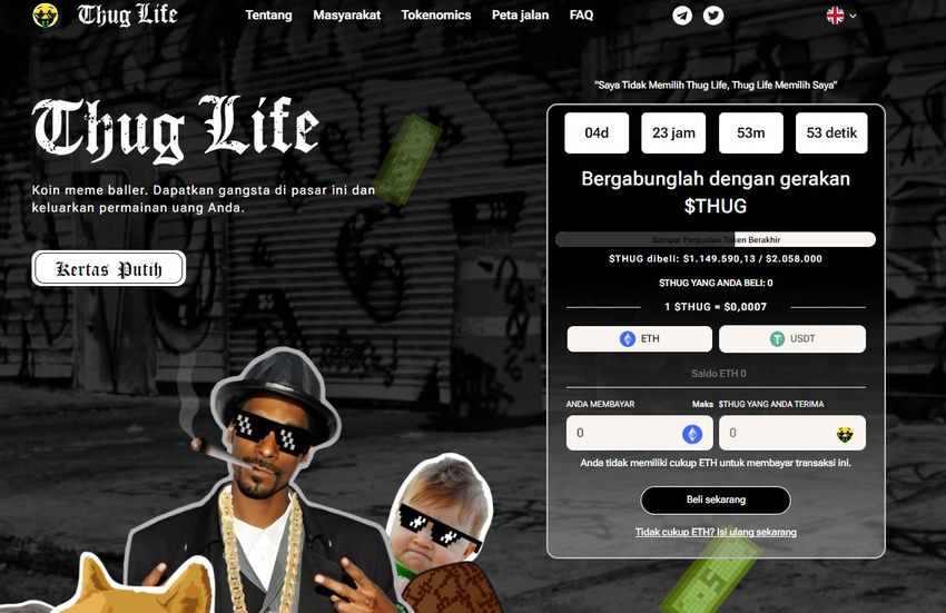 Mengingat brandingnya yang menarik, proyek Thug Life telah mengumpulkan lebih dari US$1 juta melalui fase presale, dan investor awal yang dapat membeli token $THUG hanya dengan harga US$0,0007.