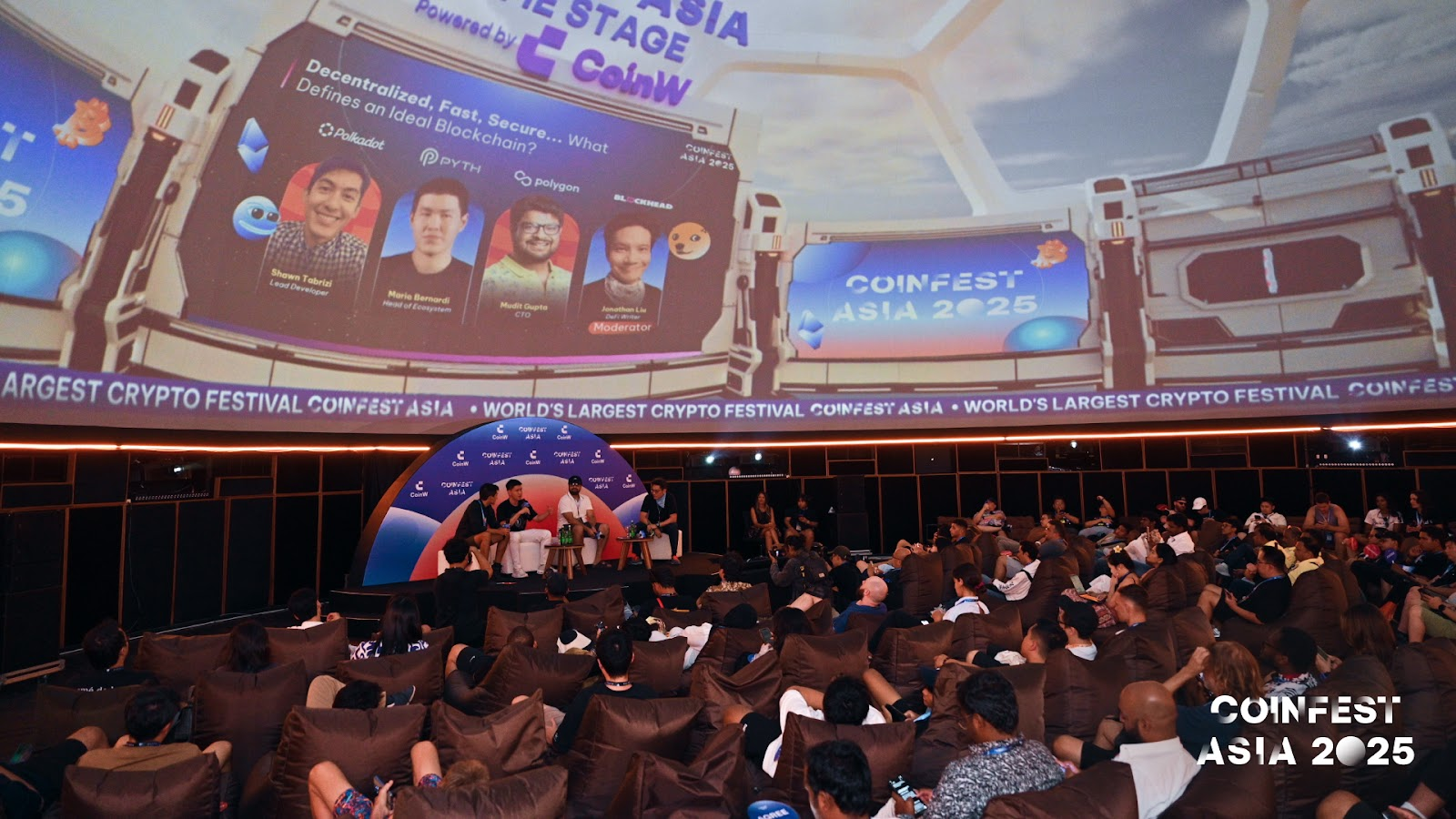 Di balik suasana festival, panggung Coinfest Asia diisi dengan diskusi strategis mengenai arah industri. Panel-panel membahas modal institusional, real-world assets, pasar global, hingga adopsi Web3 di Asia. Tokoh-tokoh dari Binance, Ripple, Stellar, Fireblocks, Bybit, Polygon, Trust Wallet, Xendit, hingga BRI Ventures ikut serta.