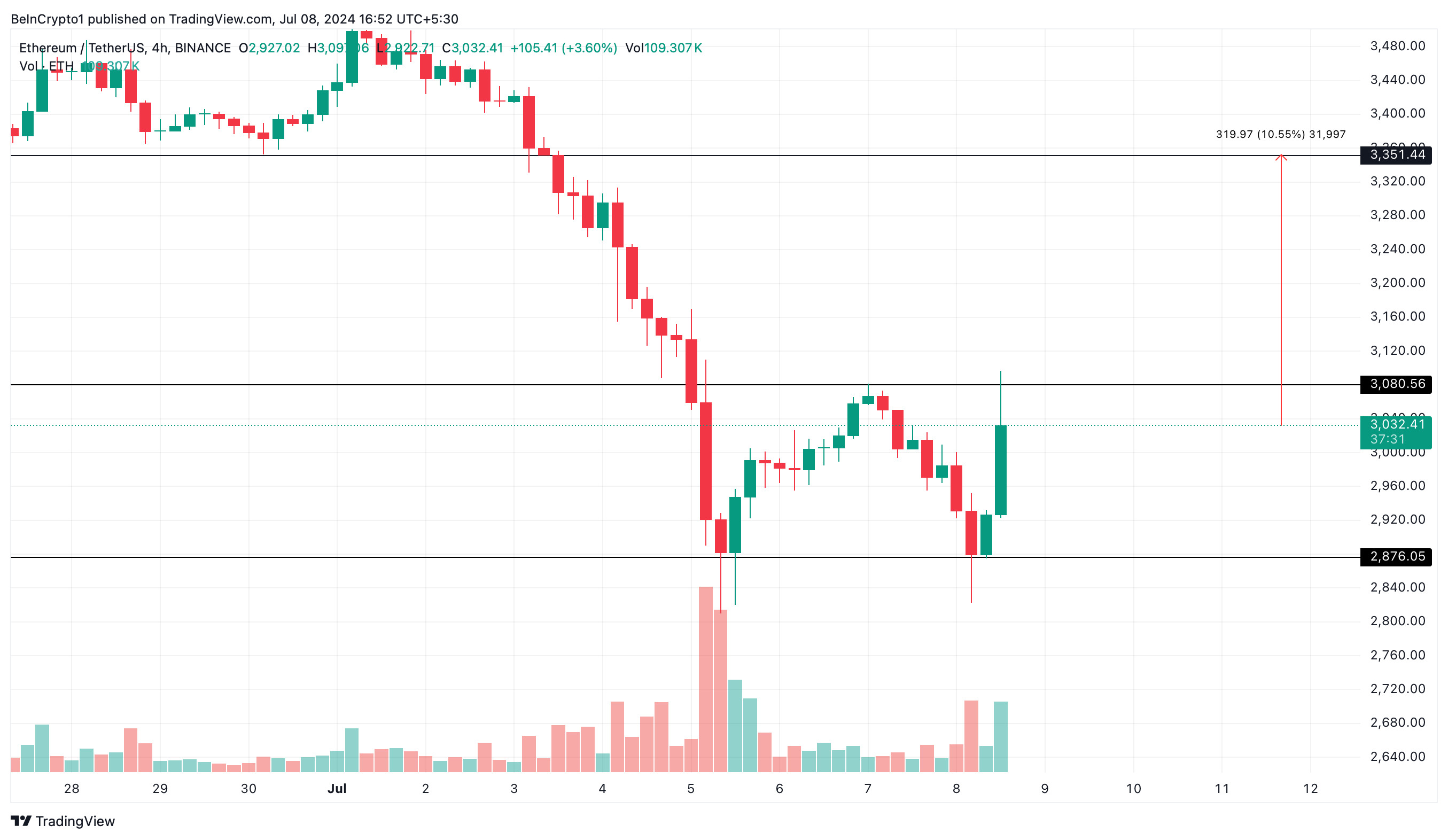 Seumpama Ethereum mampu menerobos resistance US$3.080, harga ETH bisa meroket ke US$3.350. Sebaliknya, jika gagal menembus resistance ini, harga ETH terancam akan berkonsolidasi di kisaran US$2.876 hingga US$3.080.