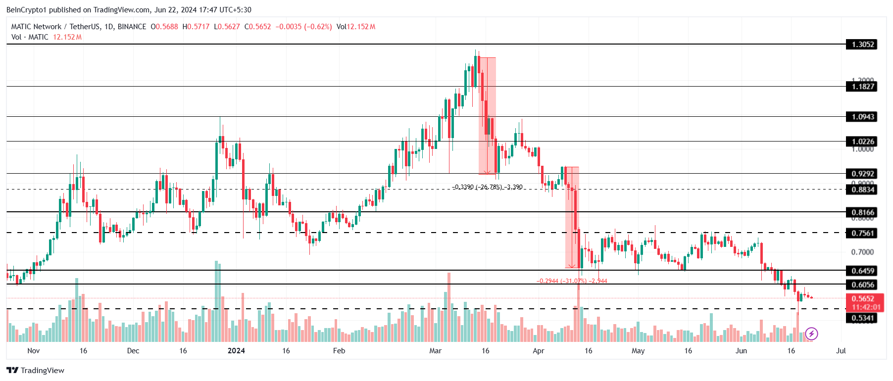 Harga Polygon (MATIC) membukukan pergerakan harga yang sama seperti kebanyakan aset lainnya menyusul aksi harga yang bearish di Juni.