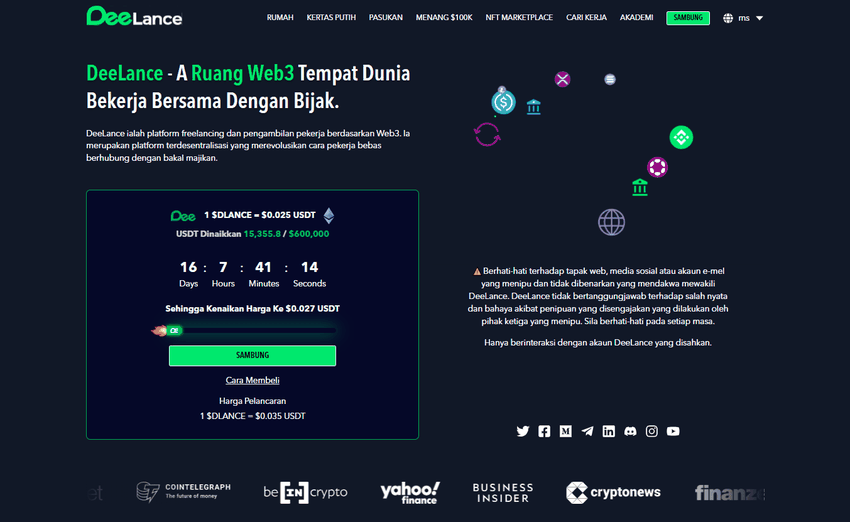 DeeLance merupakan platform web 3.0 yang menjanjikan untuk merevolusi ekonomi pekerja lepas. Dengan menghilangkan perantara, platform ini memberikan perekrut kepemilikan penuh atas pekerjaan mereka melalui teknologi NFT. Para pekerja lepas juga dapat menerima pembayaran instan dalam cryptocurrency untuk layanan mereka.