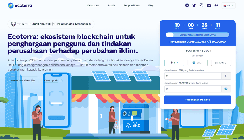Proyek ramah lingkungan yang bertujuan mengubah sektor daur ulang. Melalui program Recycle2Earn (R2E), pengguna dapat mendaur ulang sampah di platform Ecoterra dan mendapatkan imbalan dalam token ECOTERRA.