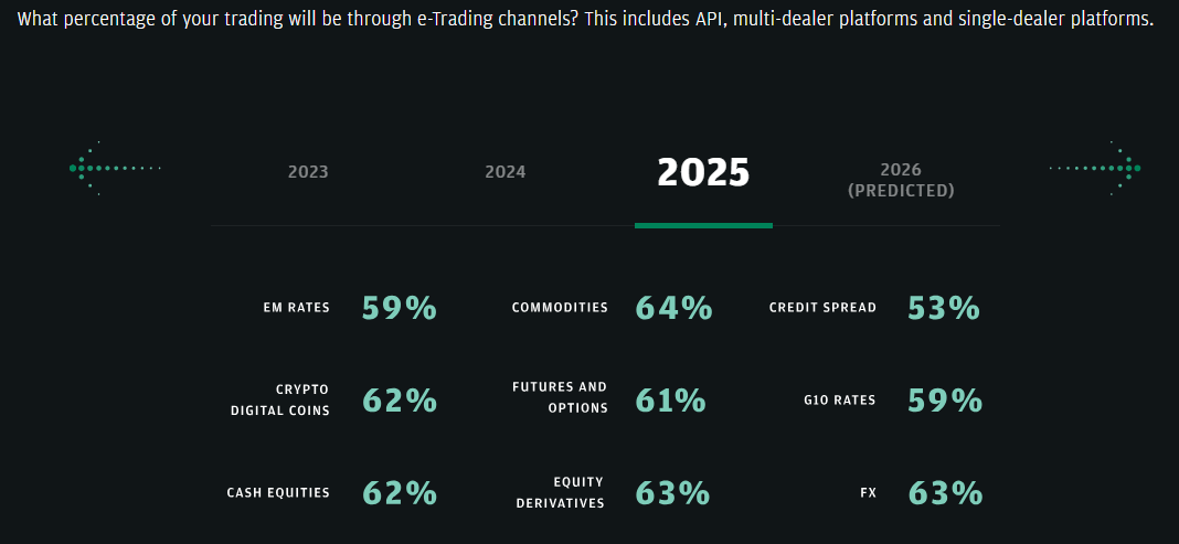 Laporan ini juga menyoroti perubahan struktur pasar. Menekankan bahwa perdagangan elektronik diharapkan berkembang di semua kelas aset, termasuk pasar yang sedang berkembang seperti kripto.