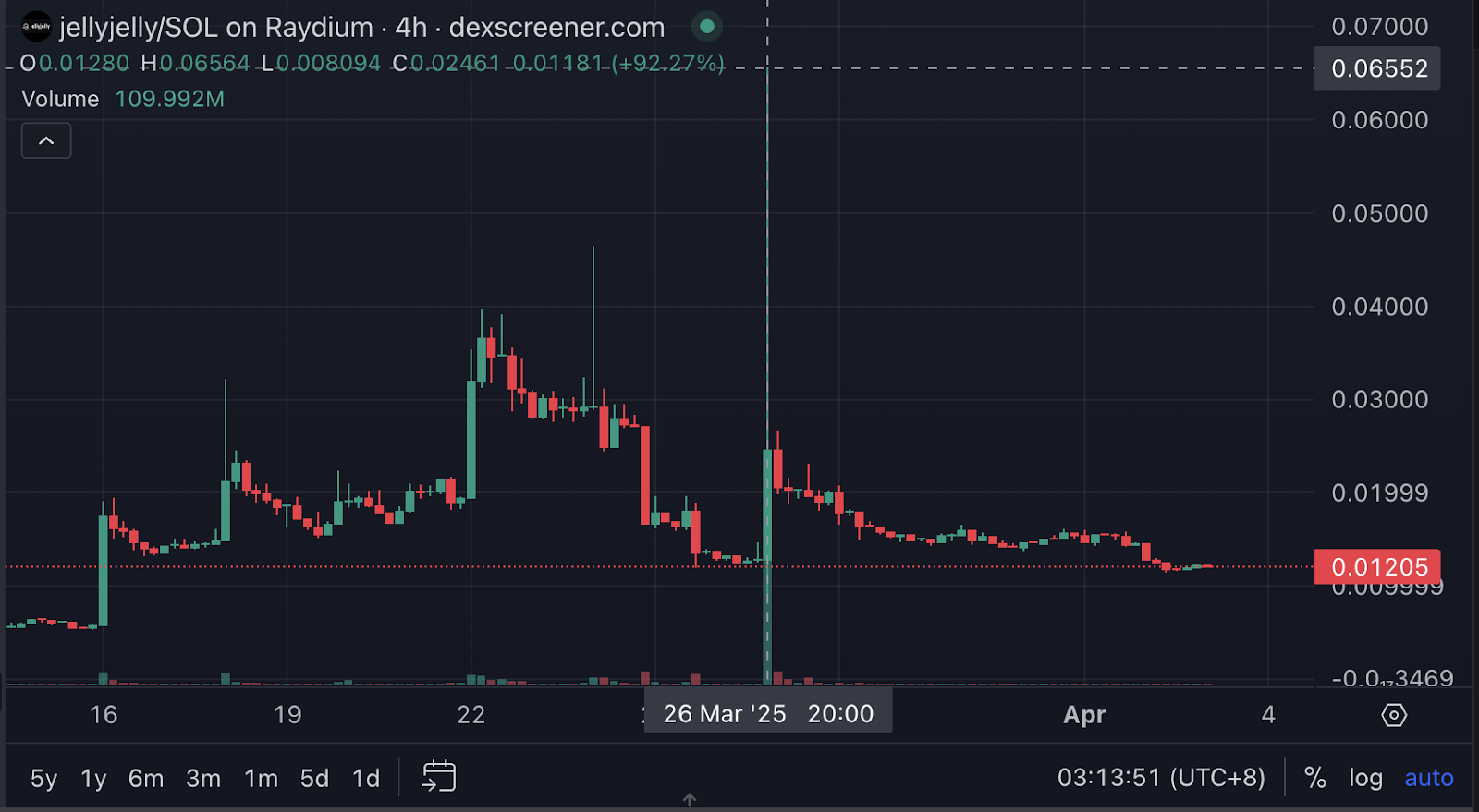 Total supply JELLYJELLY adalah 999.999.099. Dalam konteks ini, seorang trader, yang memiliki hampir 125 juta JELLYJELLY, melakukan dump seluruh token yang ia miliki dan membuka short position sebesar hampir 400 juta token di kisaran harga US$0,0095, atau sekitar 40% dari seluruh supply.