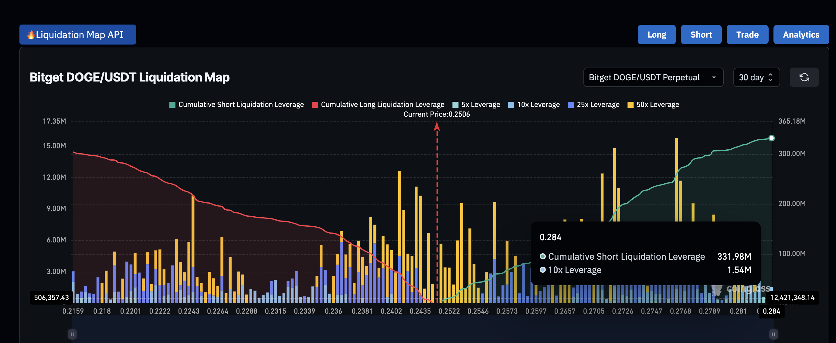Antara US$0,247–US$0,249 (pada waktu publikasi), sekitar 1,89 miliar DOGE berada, menciptakan bantalan tebal yang melindungi dari penurunan lebih dalam, terutama di bawah US$0,24.