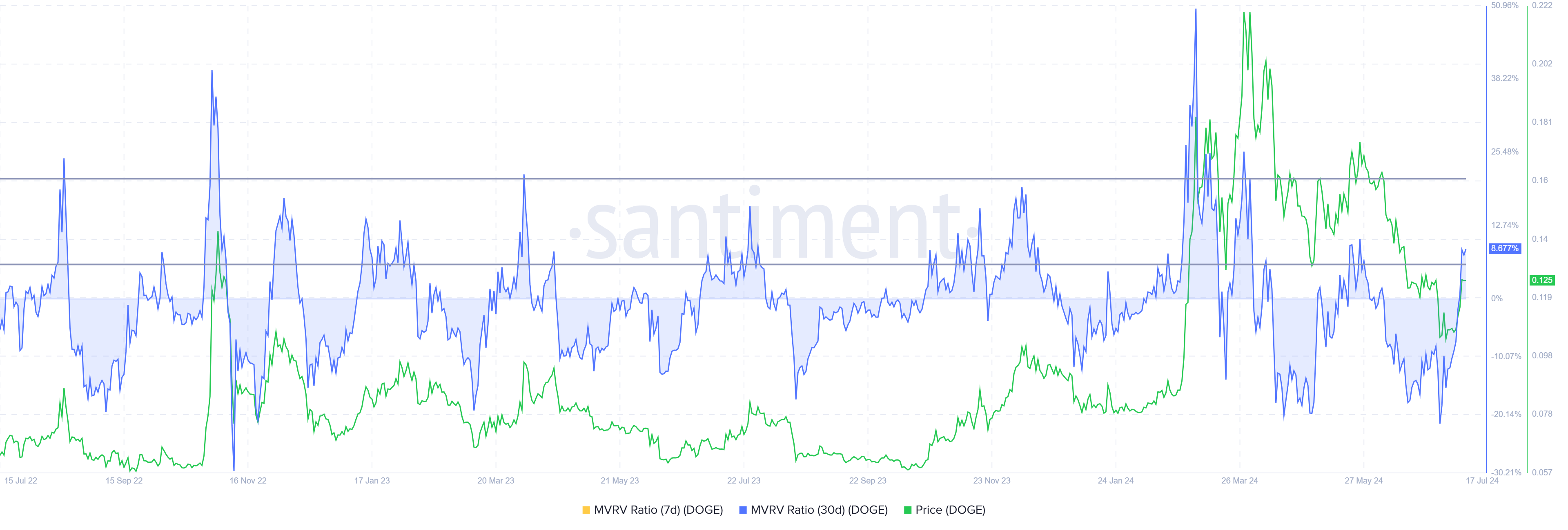 Lebih lanjut yang menguatkan sentimen ini adalah Market Value to Realized Value Ratio (MVRV). Rasio MVRV menilai laba dan rugi investor. MVRV 30 hari Dogecoin kini berada di 8,6%, menunjukkan profitabilitas, yang dapat memantik tekanan jual.