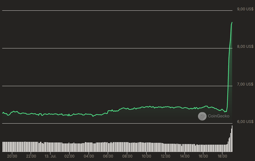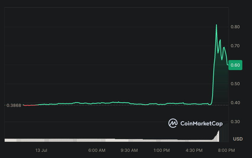 Di tengah insiden ini, harga meme coin MAGA (TRUMP) terpantau melesat 50% lebih. Kini, MAGA diperdagangkan seharga US$9,63, menurut data CoinGecko.