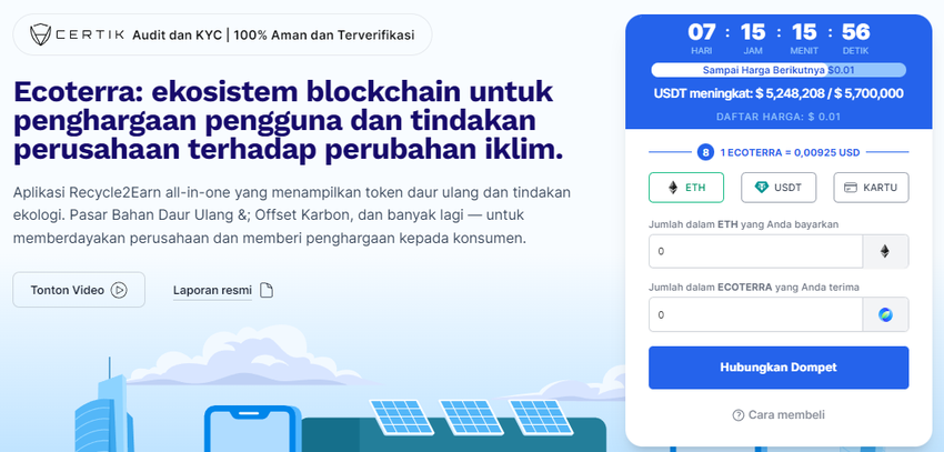 Lebih dari US$5,2 juta dana telah terkumpul, dengan harga $ECOTERRA akan naik 8,1% menjadi US$0,01 pada tahap akhir nanti.