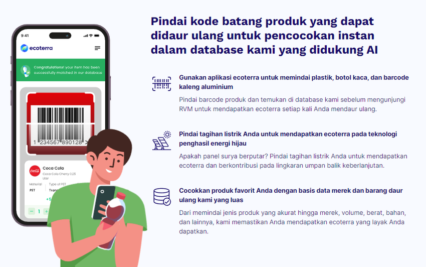 Aplikasi ini kemudian menggunakan algoritma dan basis data bertenaga AI untuk memberikan nilai pada barang tersebut, sebelum menyetor token $ECOTERRA ke dompet pengguna. Token kemudian dapat dikirim ke bursa untuk mendapatkan uang tunai.