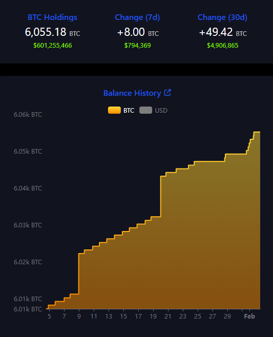 Pada 1 Februari, Kantor Bitcoin El Salvador mengonfirmasi pembelian tersebut, mendorong total cadangan negara menjadi sekitar 6.055 BTC, yang bernilai lebih dari US$606 juta.