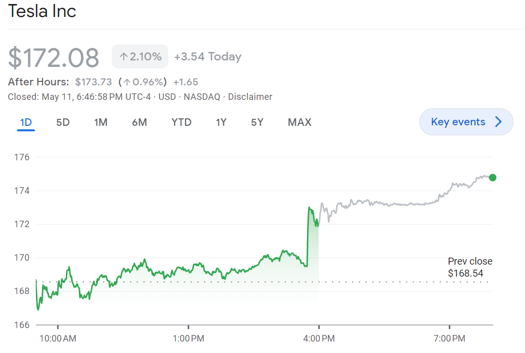 SponsoredNamun, kondisi di pasar saham memiliki kondisi jauh lebih baik. Saham Tesla (TSLA), perusahaan otomotif otonom milik Elon Musk, mencatatkan hasil yang positif dengan apresiasi harga 2,10% dari perdagangan hari sebelumnya.