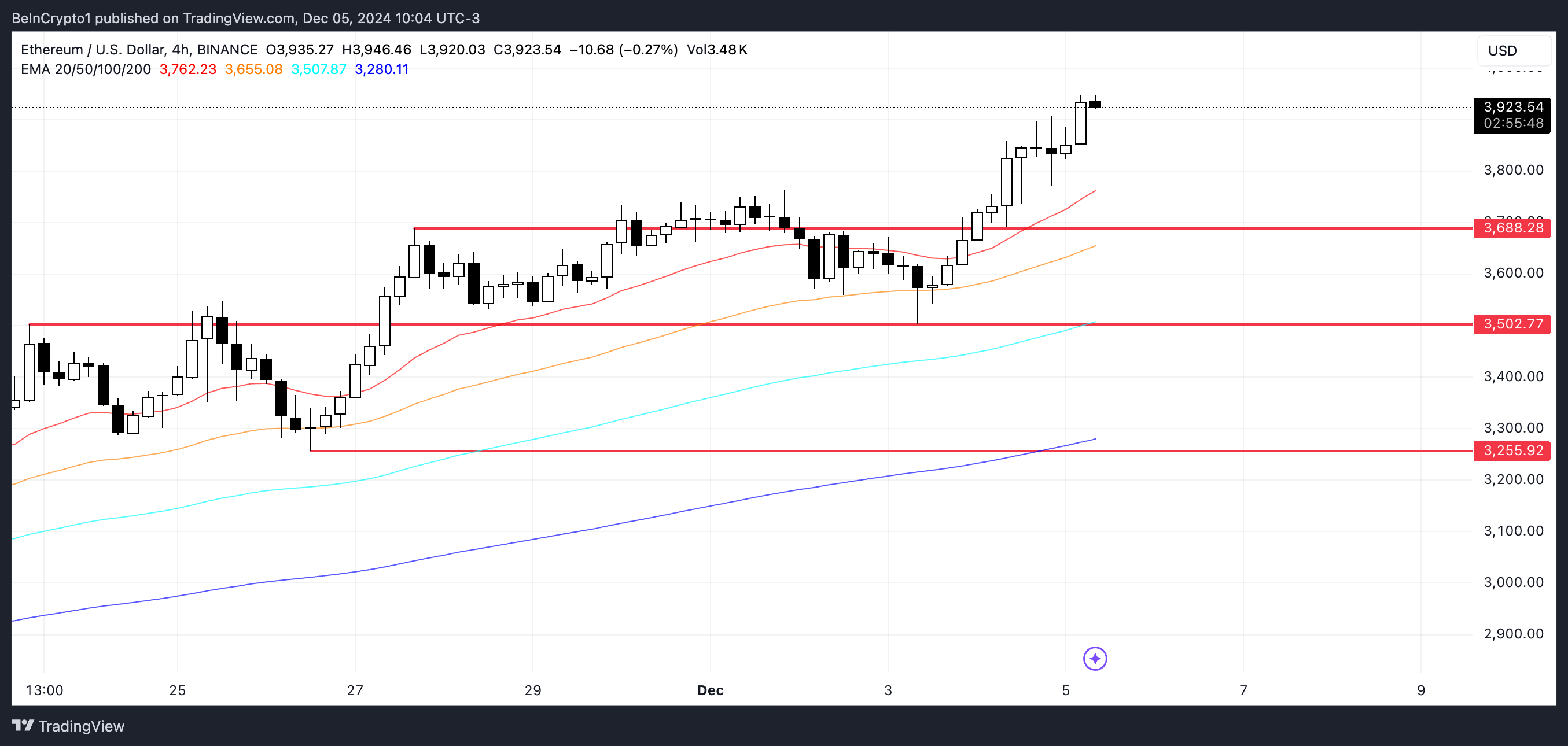Jika ETH menembus level US$4.000, ini bisa memulai lonjakan menuju harga tertinggi sebelumnya di US$4.867, namun jika gagal mempertahankan reli ini, mungkin akan menguji ulang level support kunci.