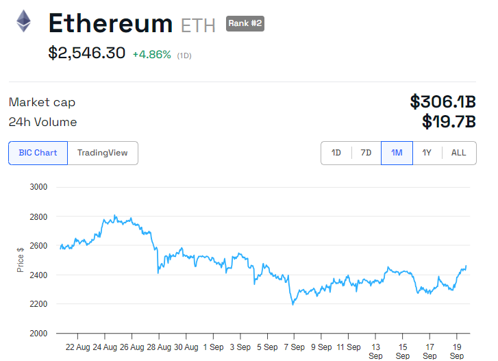 Data BeInCrypto menunjukkan ETH diperdagangkan seharga US$2.546 saat ini, naik hampir 5% sejak sesi Jumat dibuka.