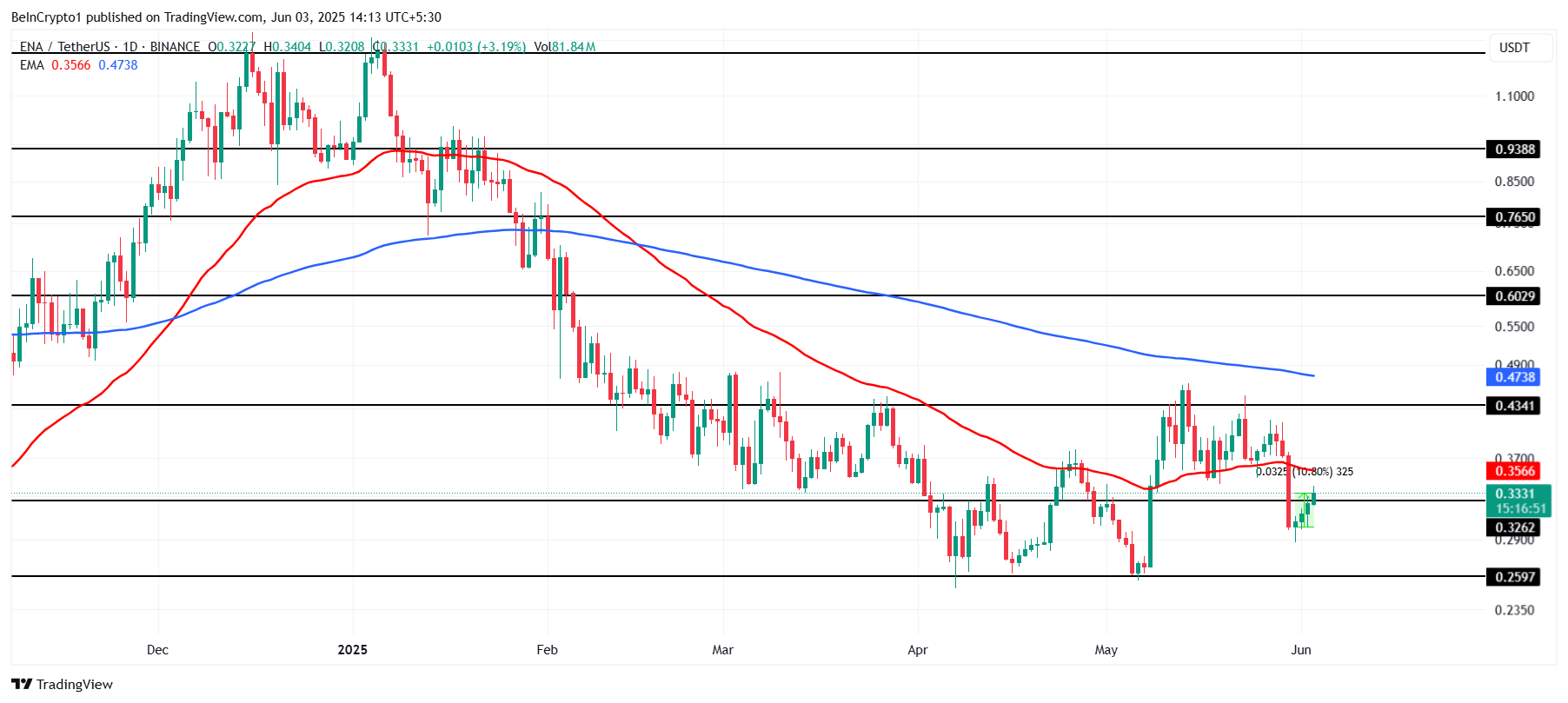 SponsoredKisaran ini mewakili titik resistance kritis, karena holder di zona ini mungkin ingin menjual pada harga pokok mereka, terutama jika harga mendekati level ini. Jika ini terjadi, bisa mengakibatkan tekanan turun yang signifikan pada harga ENA.