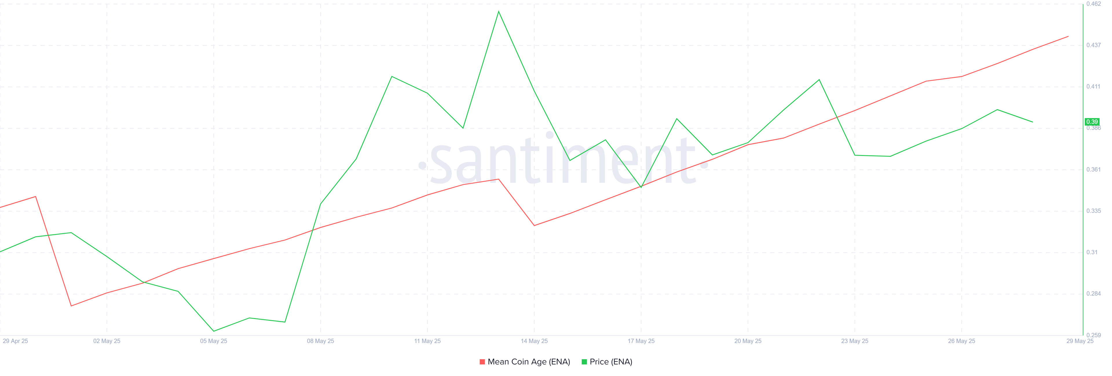 Saat ini diperdagangkan pada US$0,33, Ethena telah mengalami peningkatan 10% dalam empat hari terakhir. Namun, masih jauh dari memulihkan kerugian yang terlihat awal tahun ini. Pengumuman terbaru bahwa ENA sedang dipertimbangkan untuk listing di Coinbase telah memberikan sedikit dorongan kepercayaan, dan ini bisa membuka jalan untuk kenaikan harga lebih lanjut.