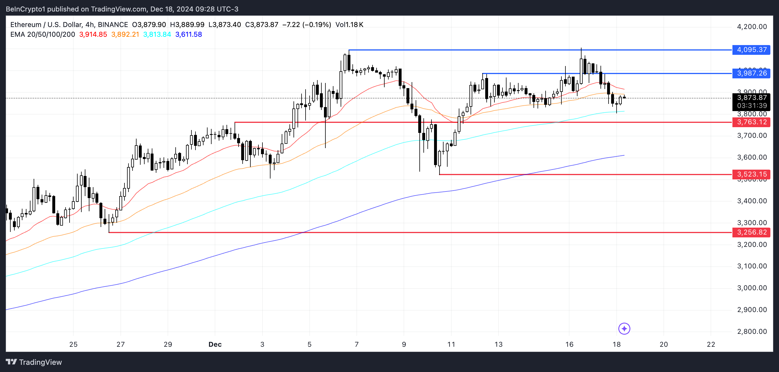 Secara historis, ETH cenderung bangkit kembali setelah MVRV turun ke -4% atau lebih rendah, sejalan dengan peningkatan akumulasi whale, karena alamat yang memegang setidaknya 1.000 ETH terus meningkat pada bulan Desember. Sementara ETH menghadapi resistance kunci di US$3.987, jika berhasil menembusnya, bisa mencapai US$4.100 dan lebih tinggi, namun sinyal bearish dari garis EMA yang bertemu bisa menguji support di US$3.500 atau lebih rendah.